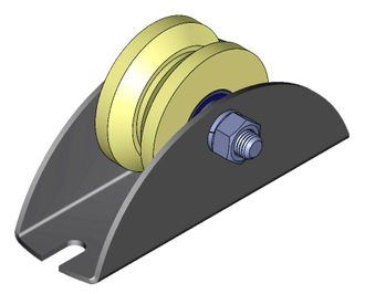 Ролик используется для устройства раздвижных ворот. Платформа ролика привариваюся к нижней раме ворот. В качестве направляющей используется уголок , который устраивается на бетонное основание. Ролик оснащен двумя подшипниками (201).